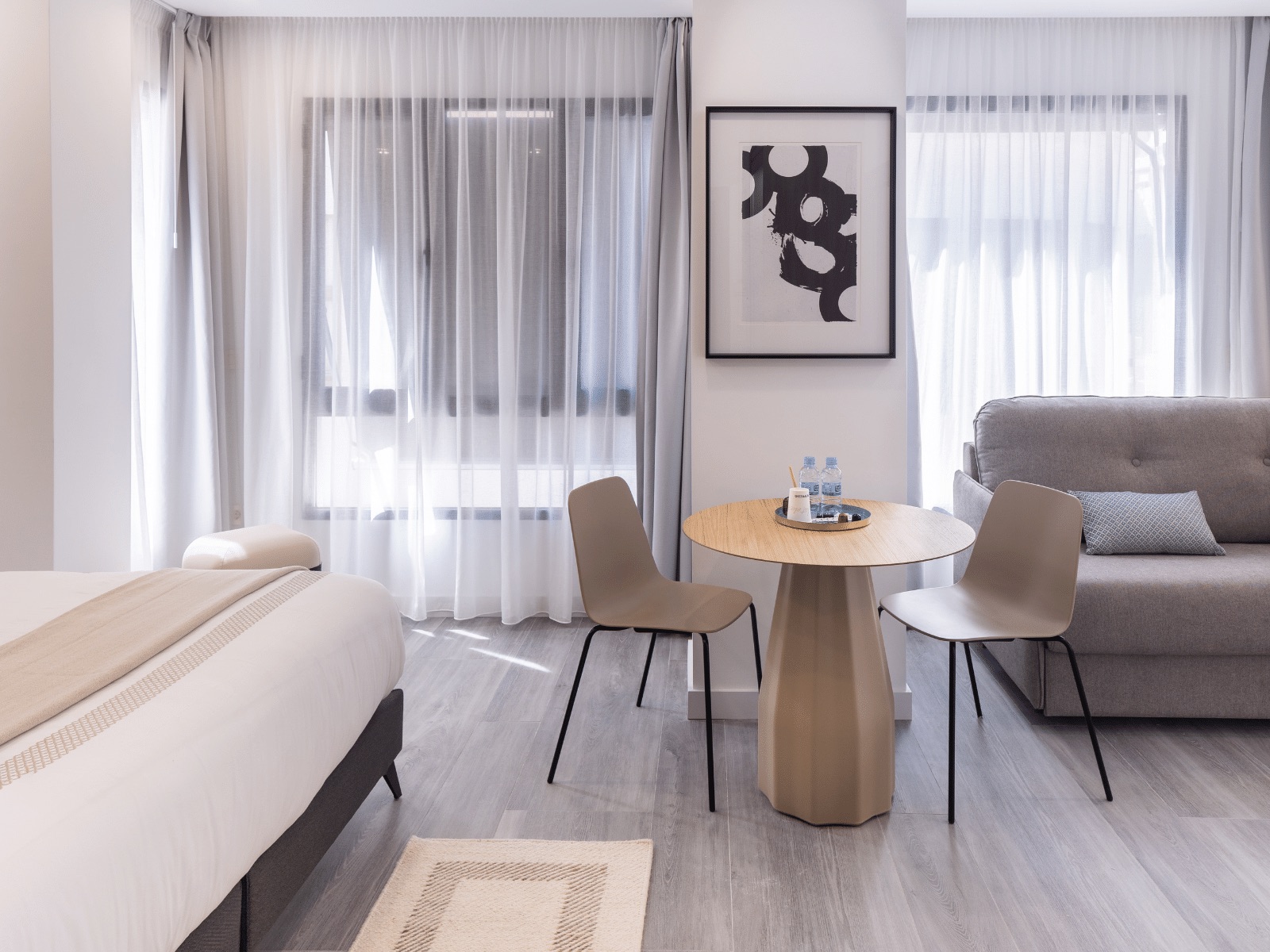 Habitaciones espaciosas, con camas de gran tamaño y complementos que conforman la decoración de este tipo de habitaciones con auténtico sello de calidad. Se compone de una cama de matrimonio grande y sofá cama.